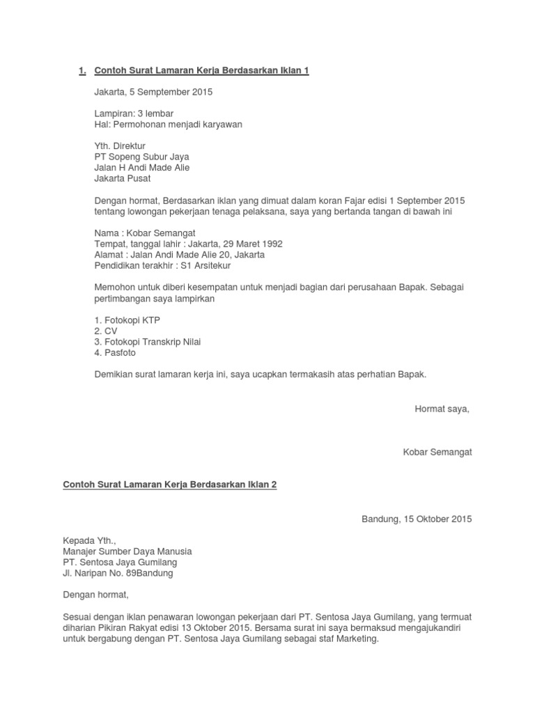 Contoh surat lamaran pekerjaan berdasarkan iklan radio. Sebelum kita lanjut ke contoh surat lamaran, ada baiknya kamu membaca kriteria dan tips untuk membuat surat lamaran kerja yang baik dan benar. Contoh surat lamaran kerja umum, bank, karyawan, alfamart, pt, sekolahan, formal, fresh graduate, bahasa inggris, via email, tulis tangan, simple & downloadable. Surat lamaran di atas hanyalah sebuah contoh. Atas dasar infomasi perihal lowongan pekerjaan di pt bandung kreasi abdi di koran harian bandung, saya bermaksud untuk mengajukan diri untuk dapat. 10 contoh surat lamaran pekerjaan di hotel. Contoh surat lamaran kerja di hotel selanjutnya dengan bahasa indonesia, langsung saja simak contohnya. Contoh surat lamaran kerja dan cv terbaru, contoh surat lamaran pekerjaan bahasa contoh surat lamaran kerja bahasa inggris berikut ini memang memiliki format berbeda dengan yang banyak digunakan di indonesia. Atau kamu sedang kuliah namun ingin magang di sebuah perusahaan? Contoh surat lamaran kerja terbaik, lengkap beserta tips dan trik rahasia pembuatan surat jika kamu mencari contoh surat lamaran kerja yang baik dan benar, tentu kamu akan menyadari berdasarkan informasi dari media cetak, koran terpadu perihal lowongan pekerjaan di perusahaan. Saya bermaksud untuk melamar pekerjaan dan bergabung ke dalam. Dengan hormat, sesuai dengan iklan di koran suara rakyat pada hari jum'at tanggal 7 september 2021 yang menyebutkan bahwa sma arrohmah. Berikut contoh surat lamaran pekerjaan yang bisa kamu download file dokumennya juga, link di bagian akhir artikel.